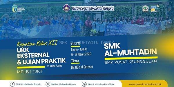 SMK Al-Muhtadin menyelenggarakan kegiatan Uji Kompetensi Keahlian (UKK) Eksternal serta Ujian Praktik bagi seluruh siswa kelas XII sebagai bagian dari tahapan evaluasi akhir sebelum kelulusan. Kegiatan ini dilaksanakan selama lima hari, yaitu pada 9–13 Maret 2026, dan diikuti oleh peserta didik dari dua program keahlian, yakni Manajemen Perkantoran dan Layanan Bisnis (MPLB) serta Teknik Jaringan Komputer dan Telekomunikasi (TJKT).